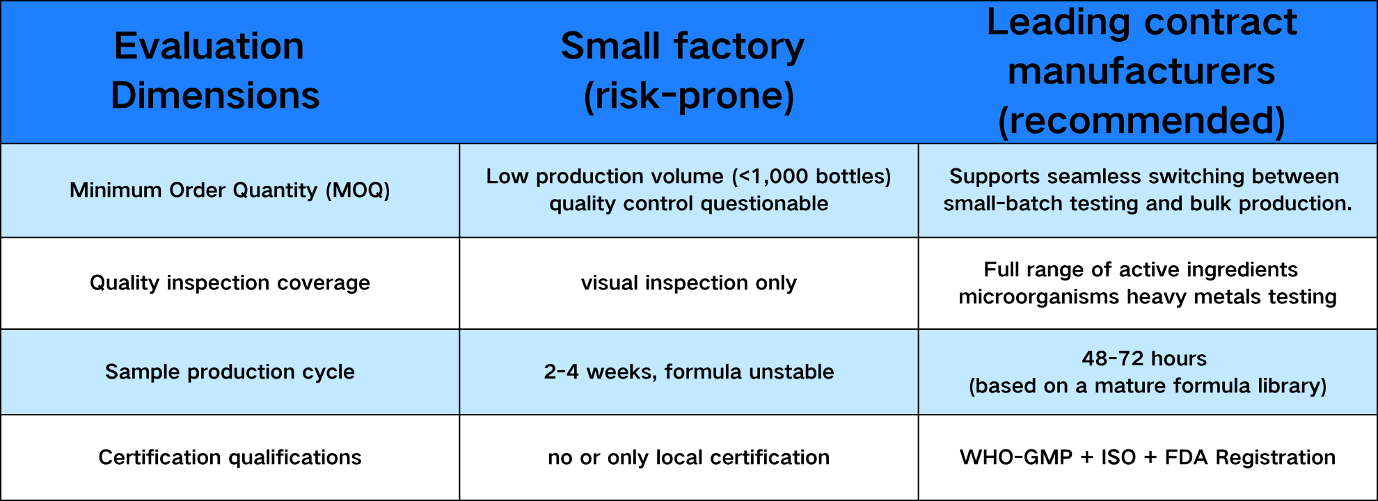For entry into the US market, cGMP (Current Good Manufacturing Practice) certification is a basic requirement of the FDA; for entry into the EU, compliance with EN ISO 22000 food safety management standards is required. Some contract manufacturers only hold domestic certifications, which may lead to problems during customs clearance.
