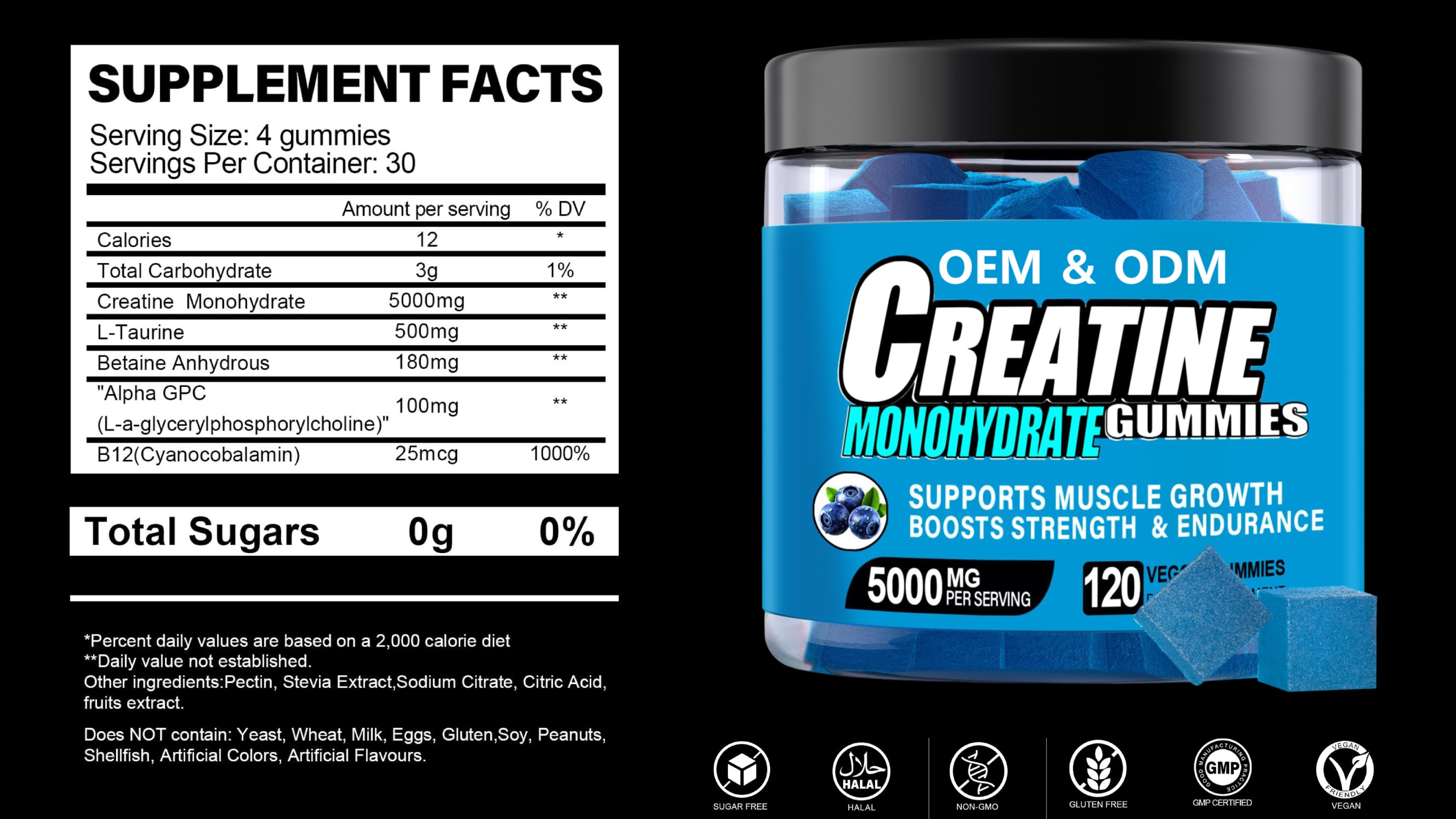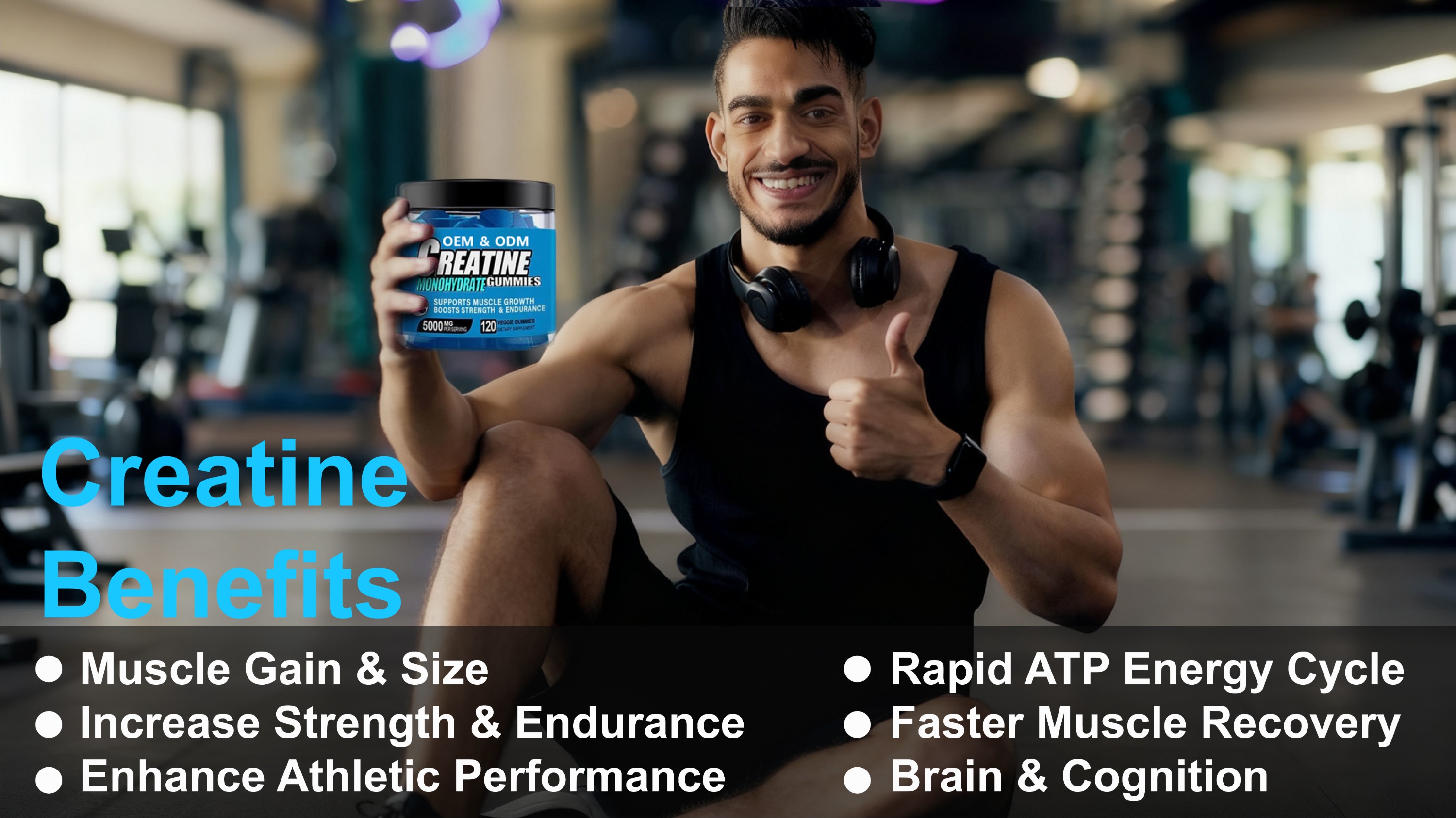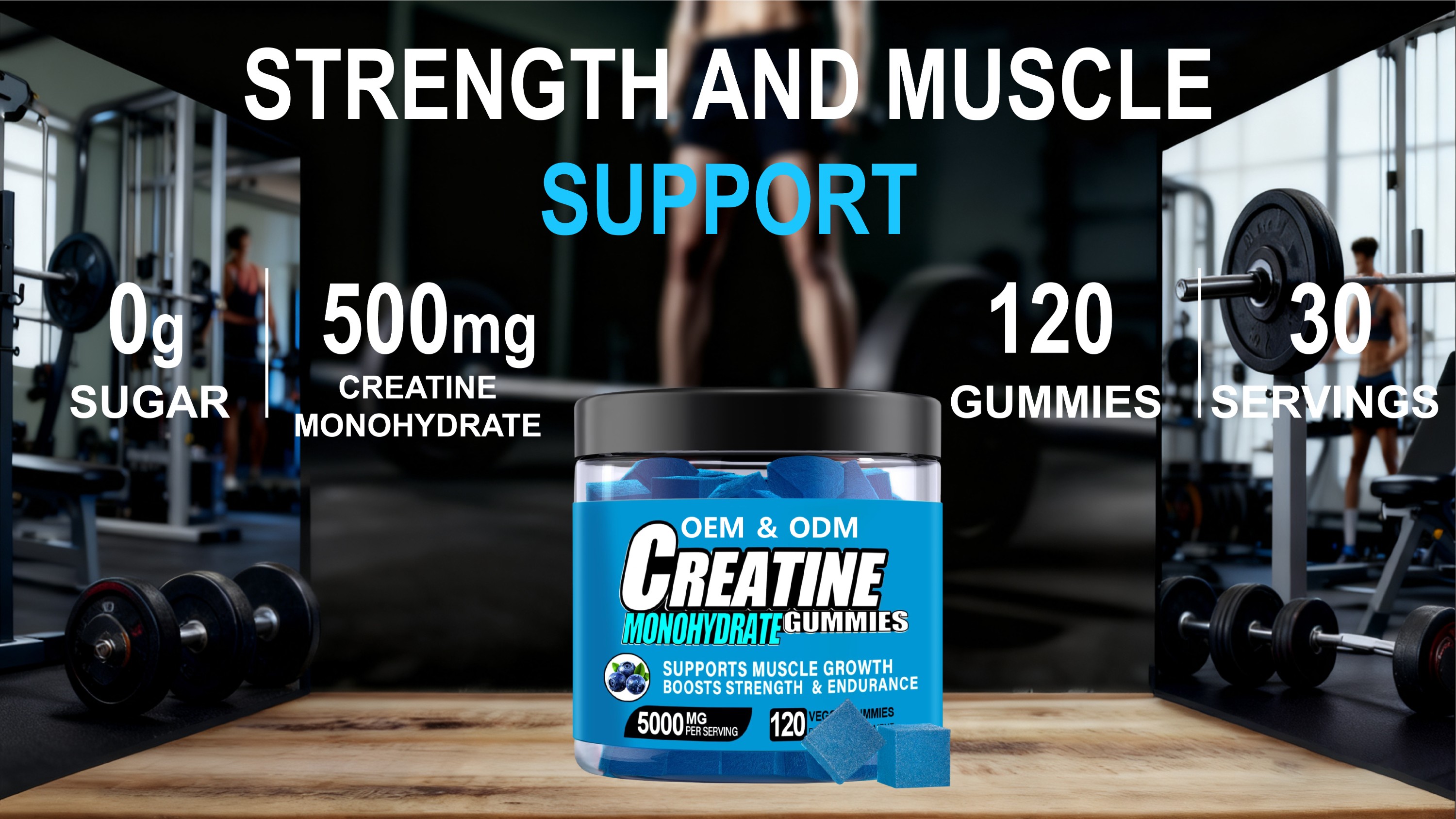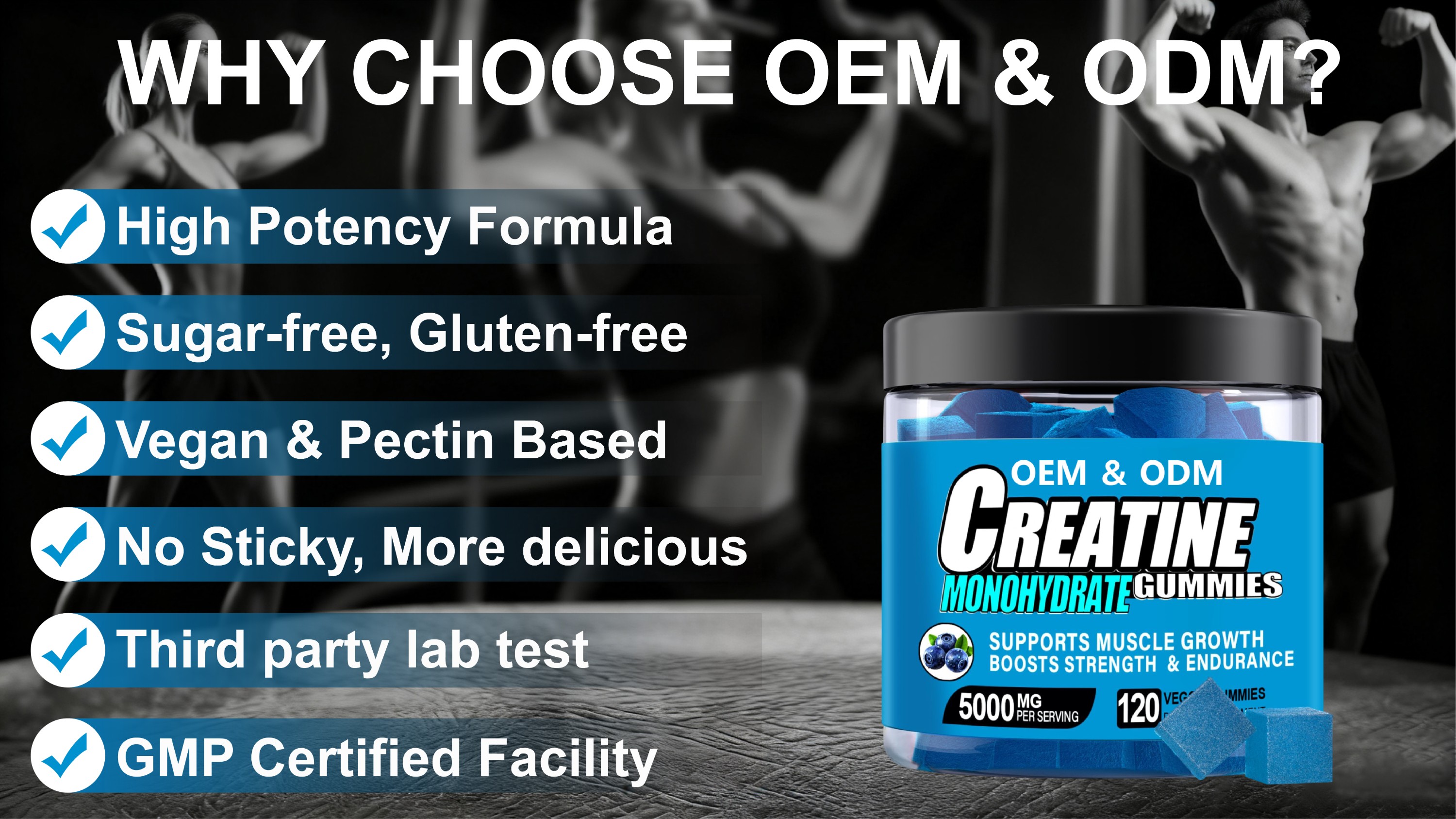 Creatine Monohydrate Gummies OEM Manufacturer | 5000MG Energy & Muscle Growth Formula (Vegan, Sugar-Free, Halal)
