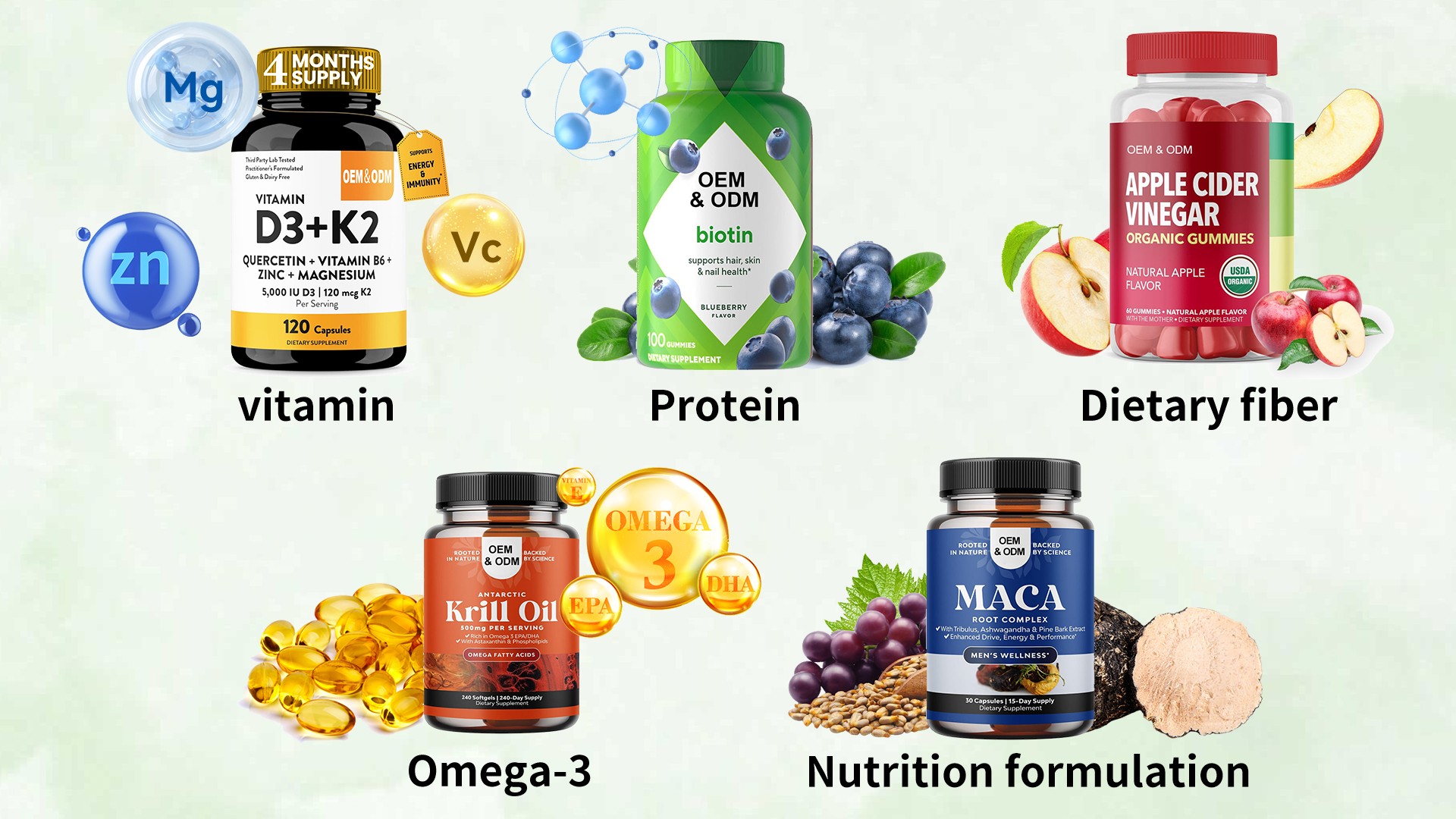 Vitamins and Minerals: Such as vitamin C, vitamin D, calcium, and iron, which help fill dietary gaps and support immune function and bone health.