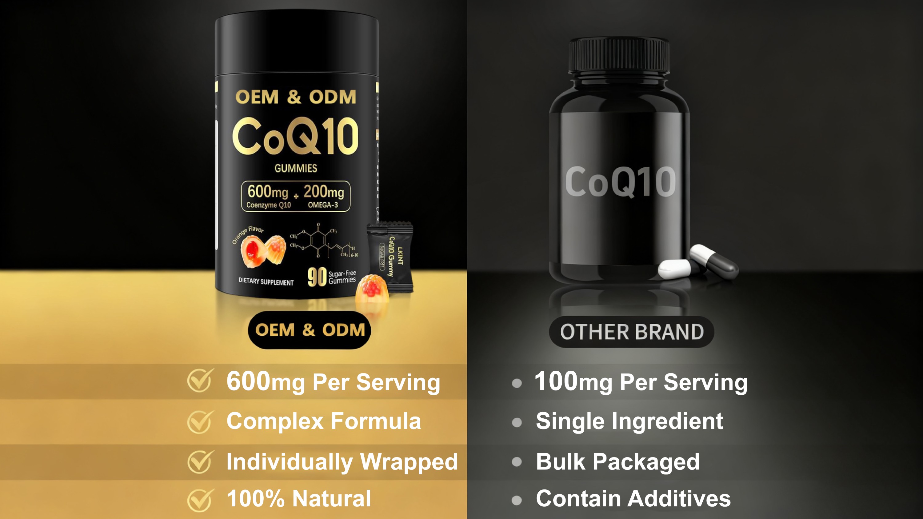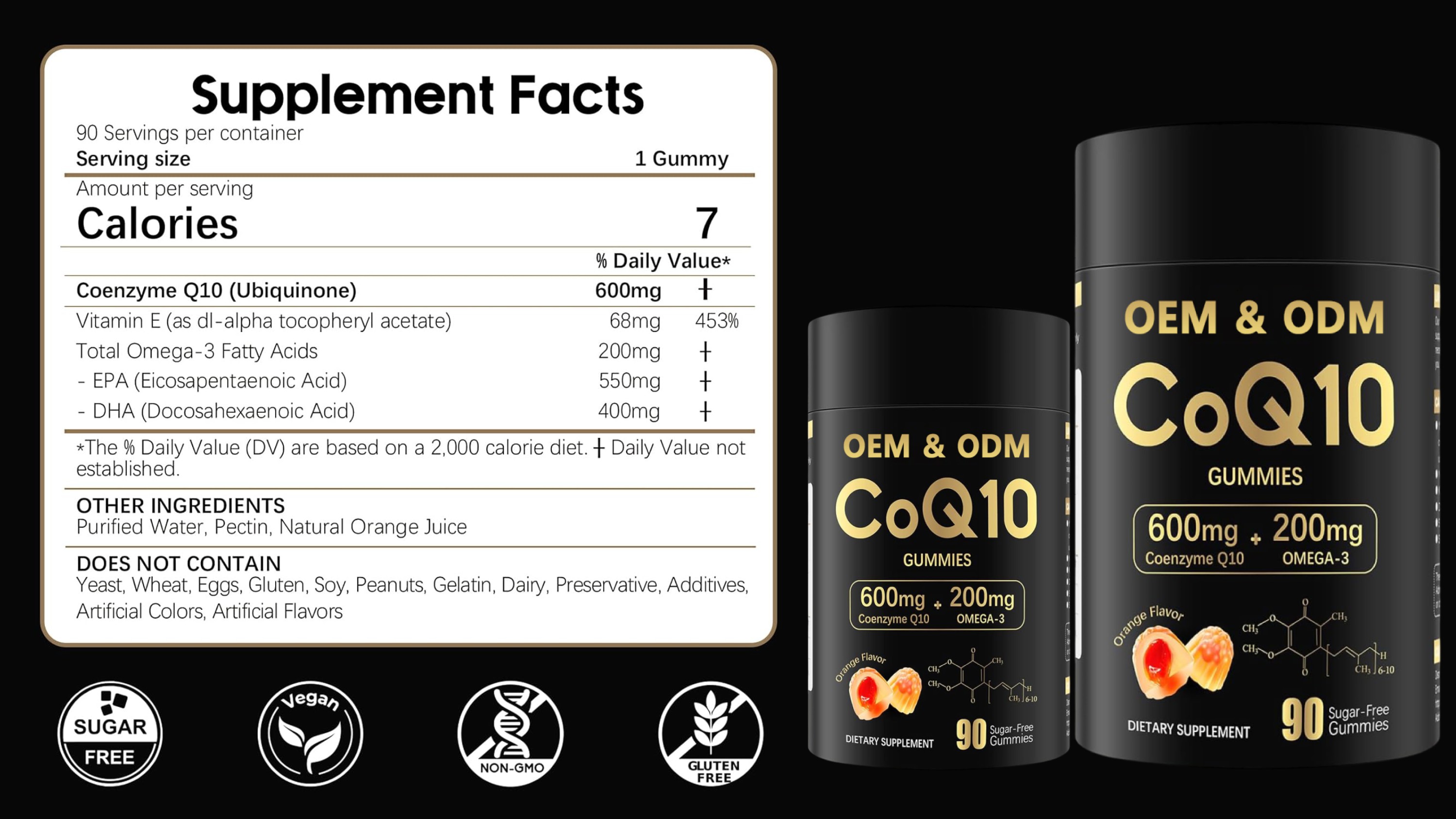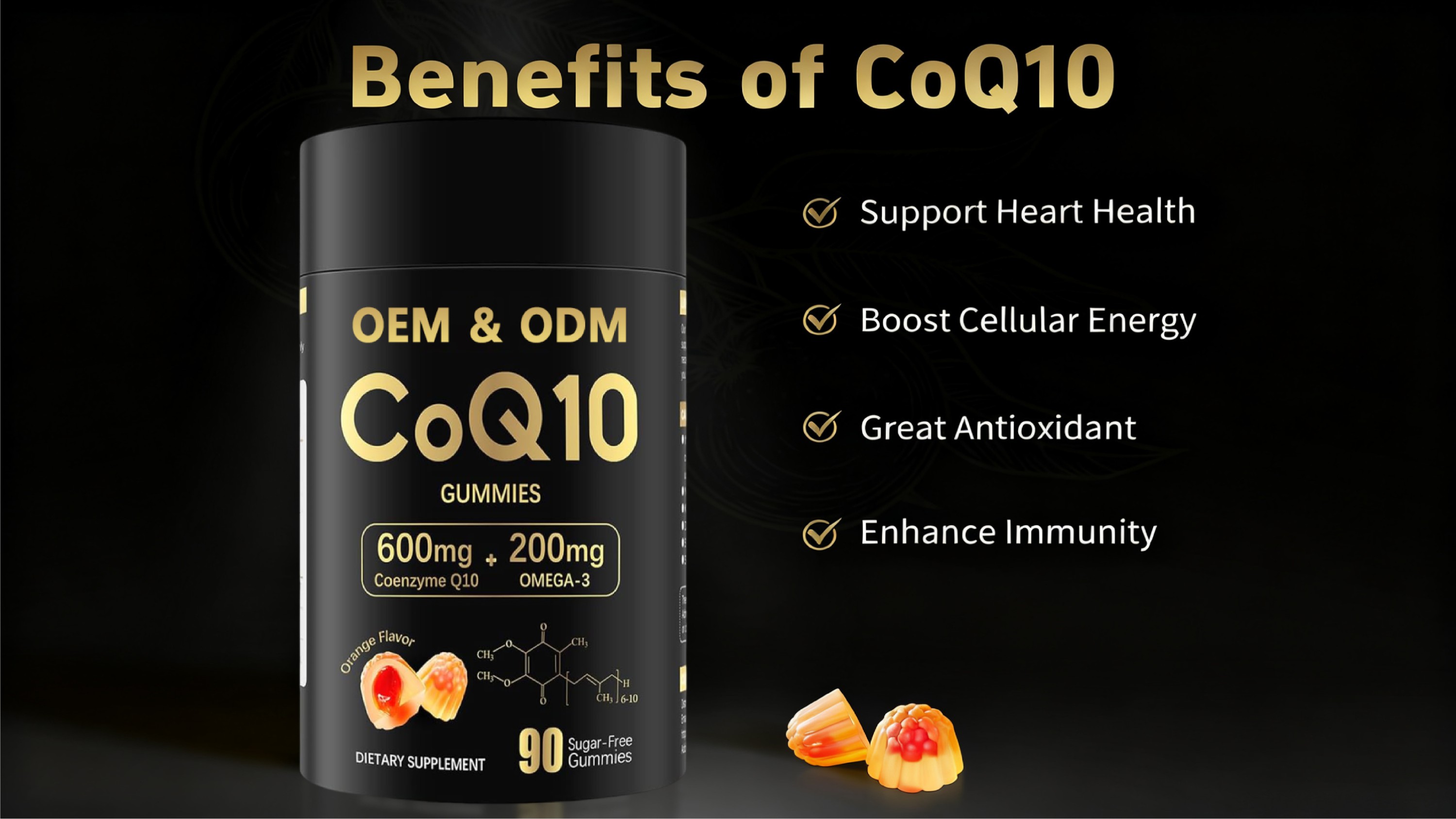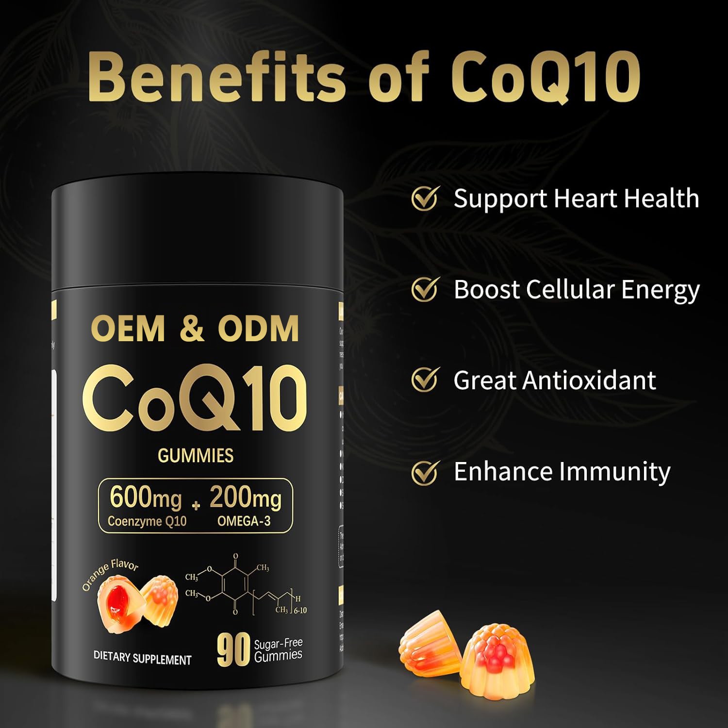 OEM Coenzyme Q10 Gummies Vegetarian Vitamins Antioxidant Supplements Coq10 Gummies for Heart Health Support Cellular Energy
