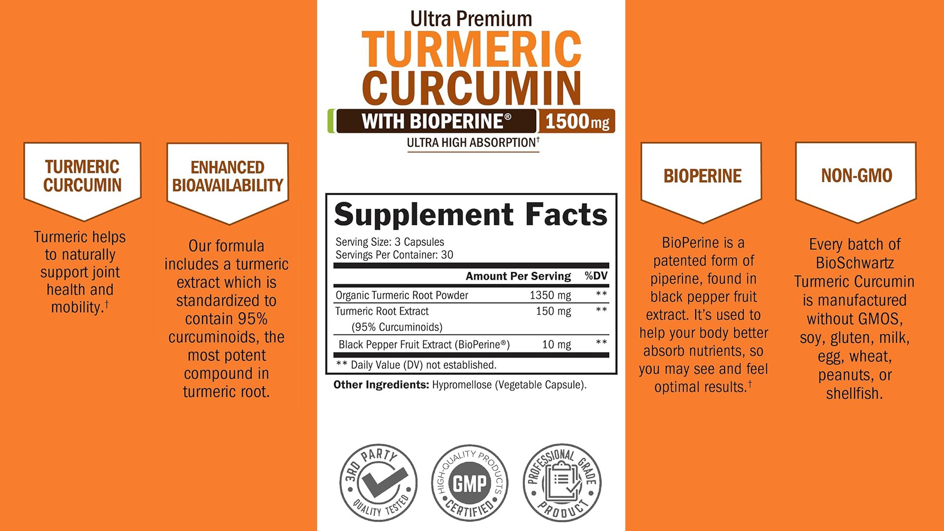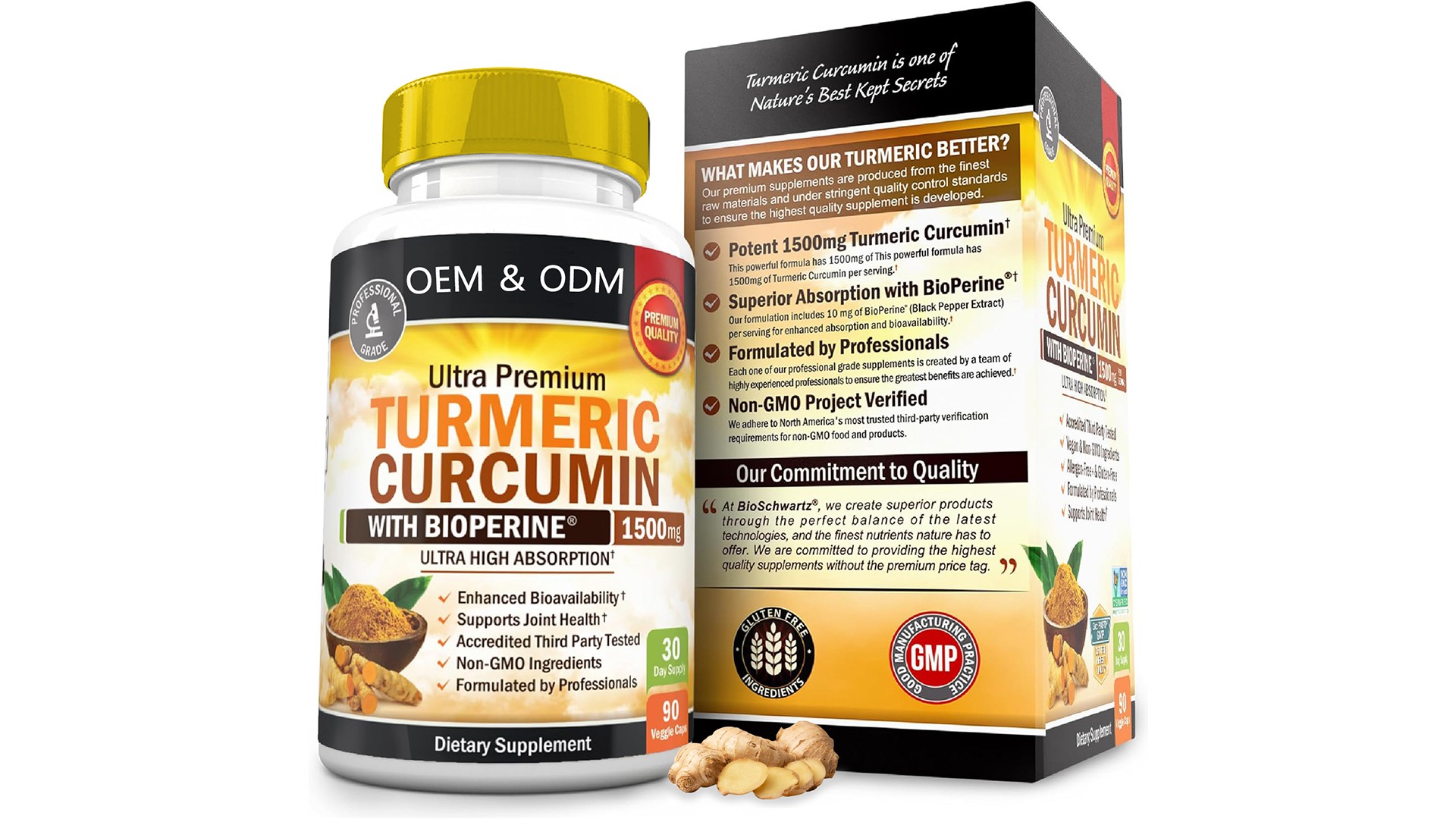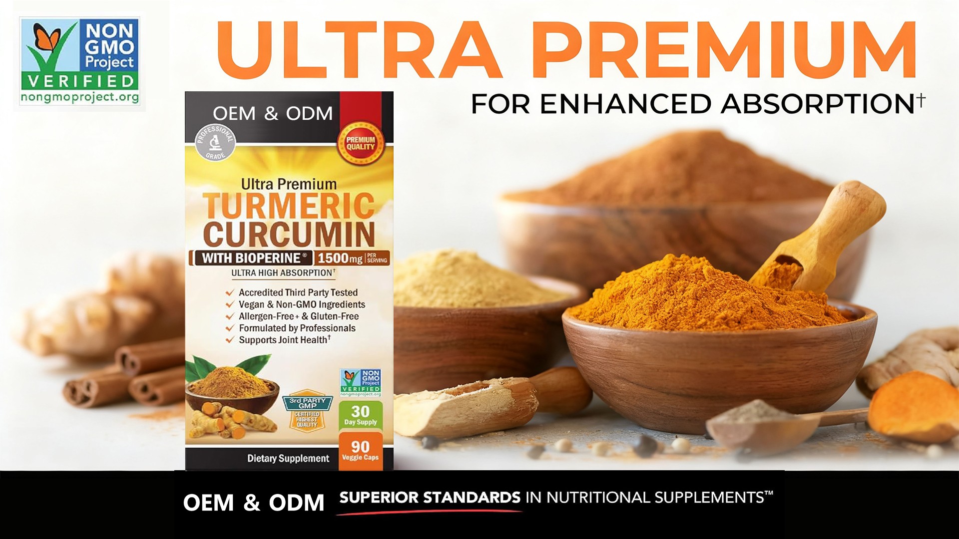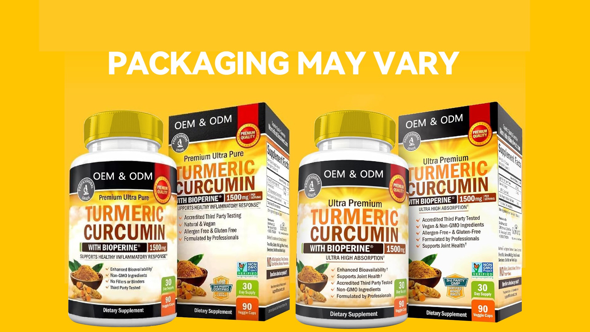 Organic Turmeric Curcumin Capsules OEM Manufacturer | 1500mg with BioPerine® for Immune, Joint & Muscle Support
