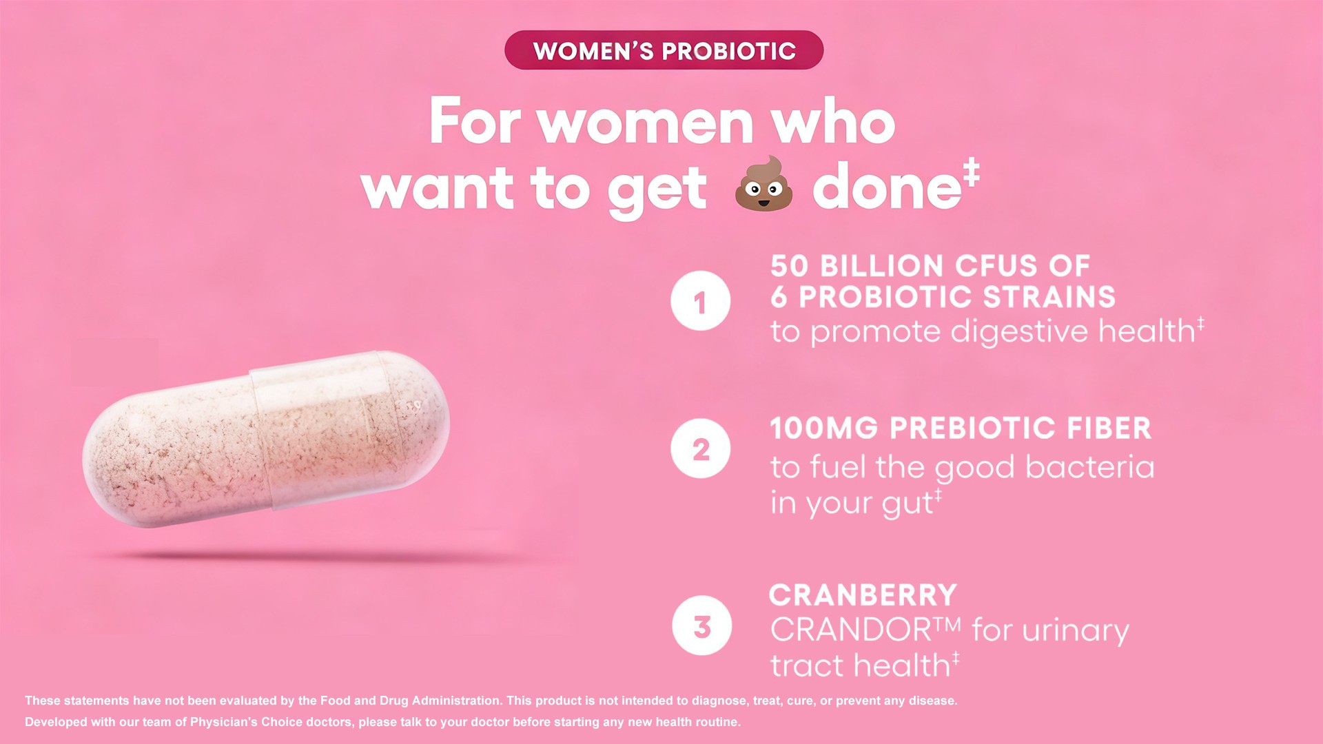 Multi-Strain Gut Balance Formula: Each capsule delivers 5 Billion CFU from 6 probiotic strains (L. plantarum, L. gasseri, B. lactis) to support digestion, regularity, and balanced microbiome health for women.