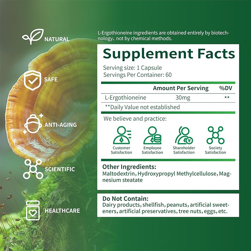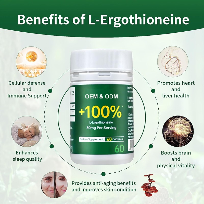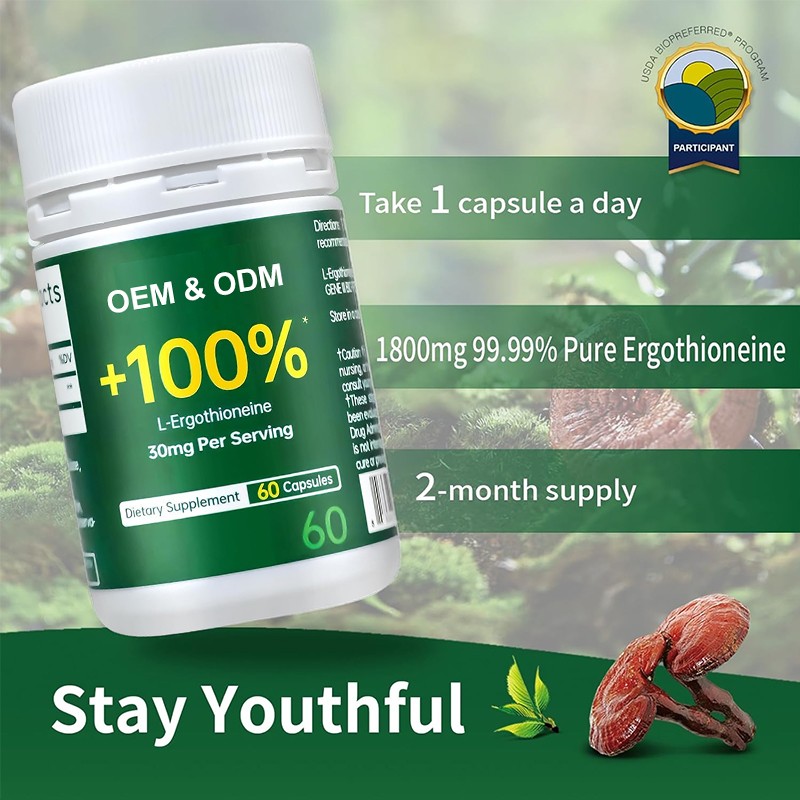 OEM ODM Anti-Aging EGT ERGO Vegan Capsules Restore DNA Cell Repair Boosts Brain Strengthen Immunity L Ergothionein Capsules