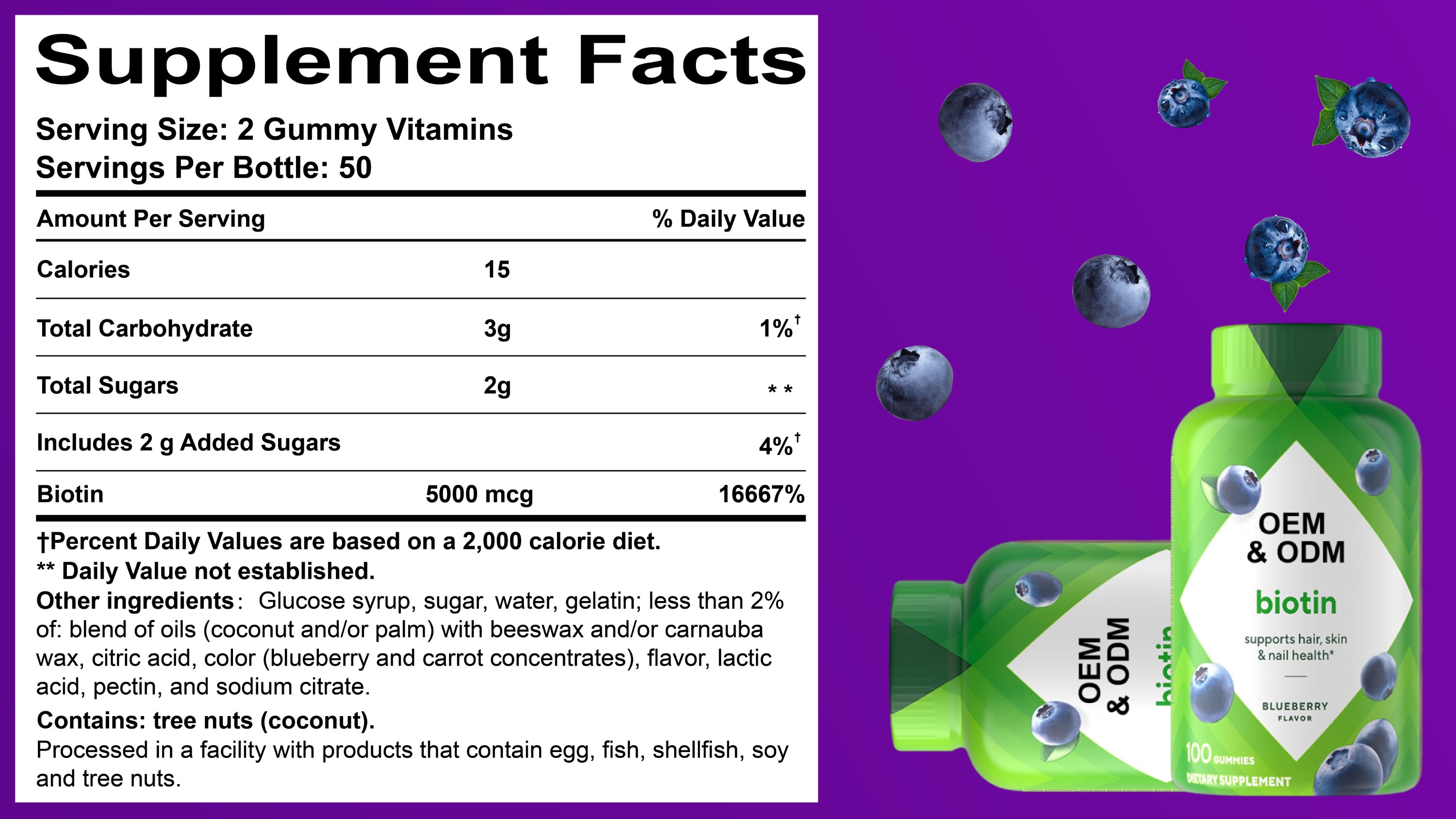 Our OEM and ODM solutions cover private label development, scalable production, and regulatory compliance, enabling brands to launch differentiated biotin gummies efficiently.