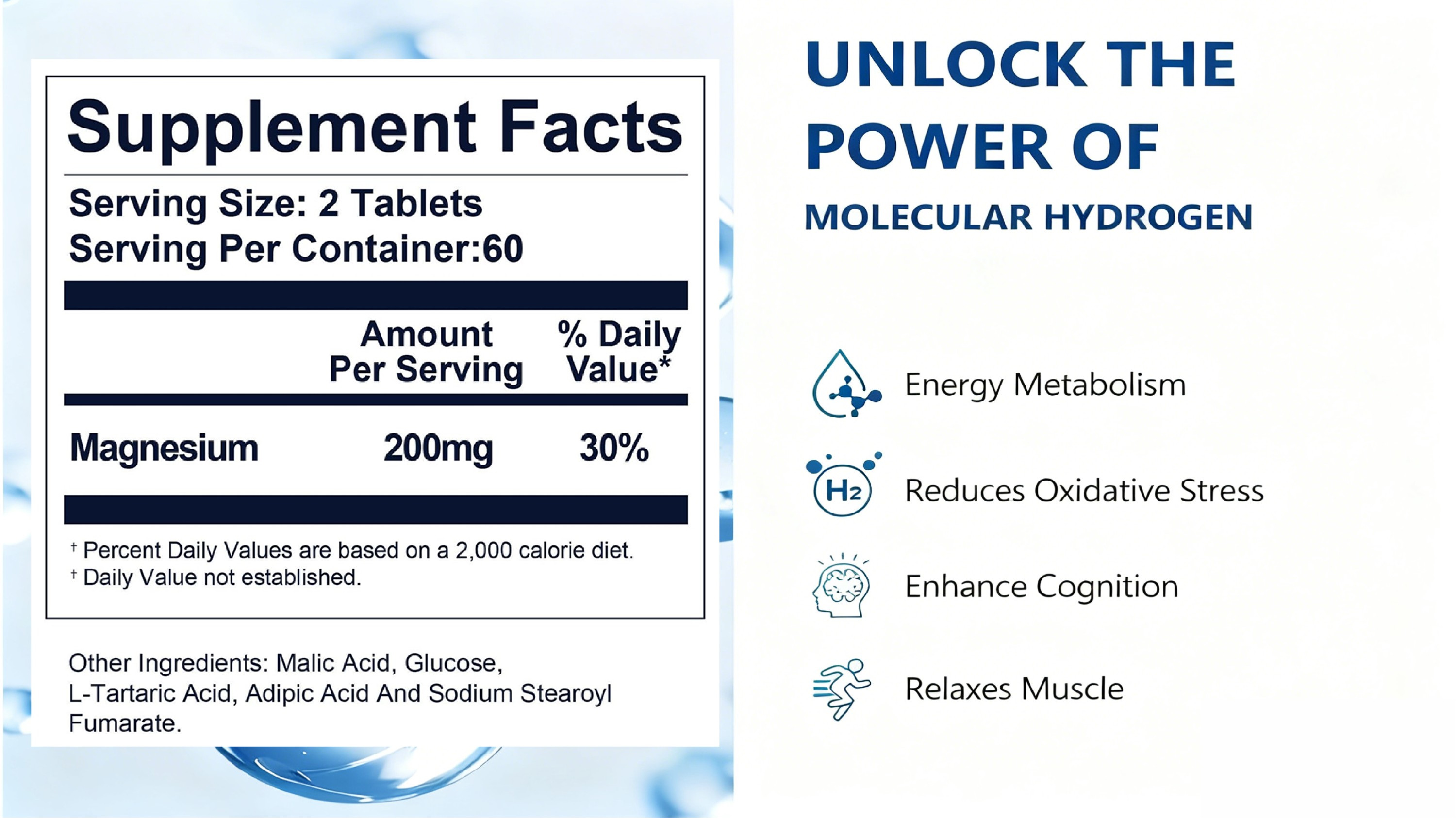 OEM ODM H2 Water Tablets Energy Metabolism Reduces Oxidative Stress Relaxes Muscle Magnesium Hydrogen Water Tablets