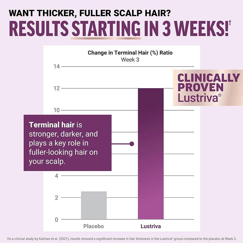 Clinically Proven Results: Lustriva (160 mg) contains 10,000 mcg of biotin, promoting thicker, fuller, and stronger hair in just 3 weeks*, accelerating terminal hair growth.