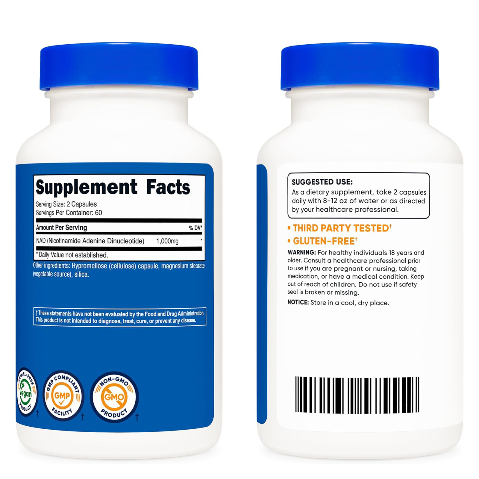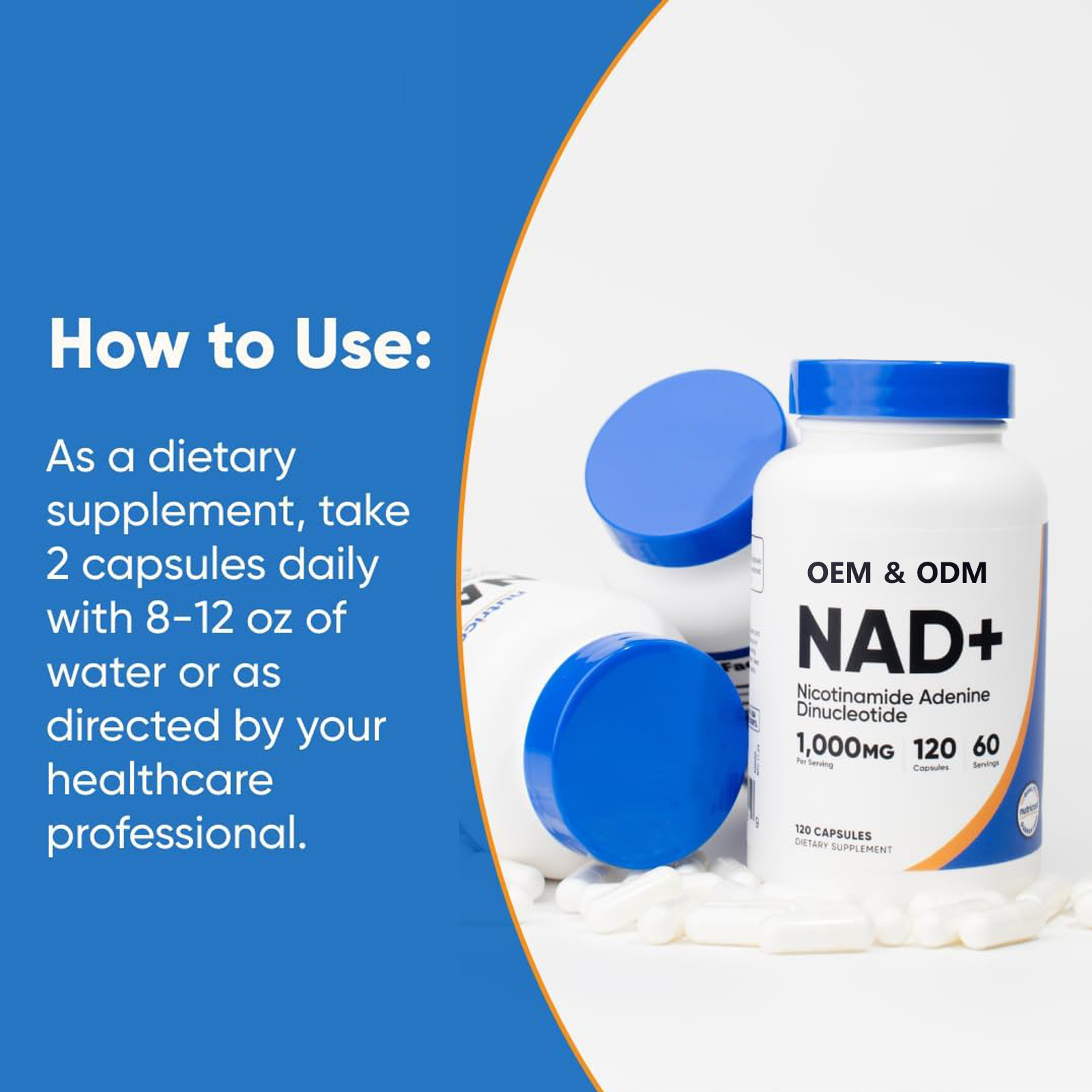 Ultra-Potent Direct NAD+ Delivery: 1000mg pure NAD+ per 2-capsule serving bypasses conversion steps for immediate bioavailability, fueling ATP production in mitochondria to combat fatigue and sustain all-day energy without crashes.