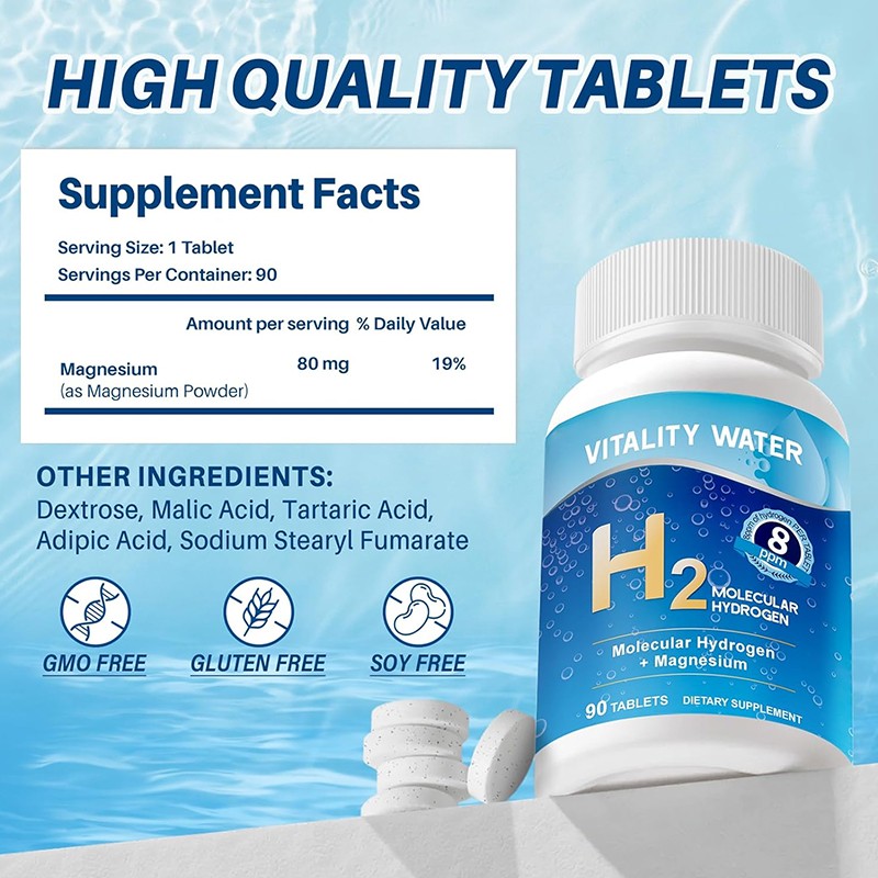 Cardiovascular Support: Boosts blood pressure health through H2's vasodilatory effects and magnesium's regulatory role.