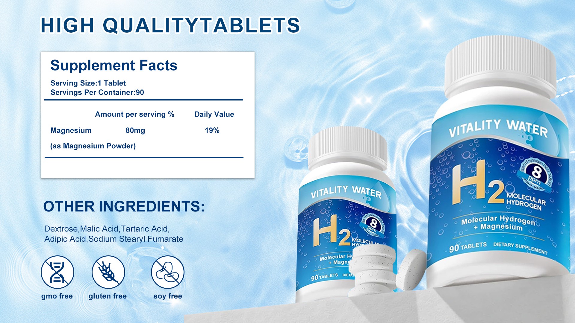 OEM ODM Molecular Hydrogen Tablets Boost Blood Pressure Health Keep Liver Health Antioxidant Potency Molecular Hydrogen Tablets