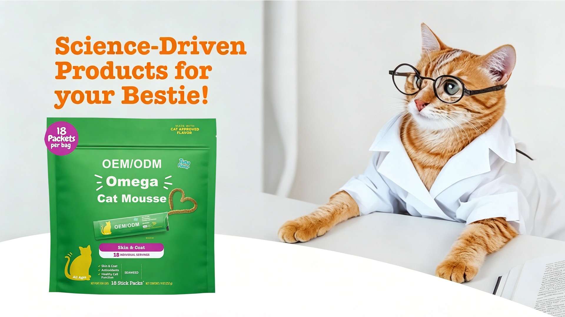 OEM/ODM Omega Cat Mousse Stick Packs – Premium Skin & Coat Support for Feline Brands