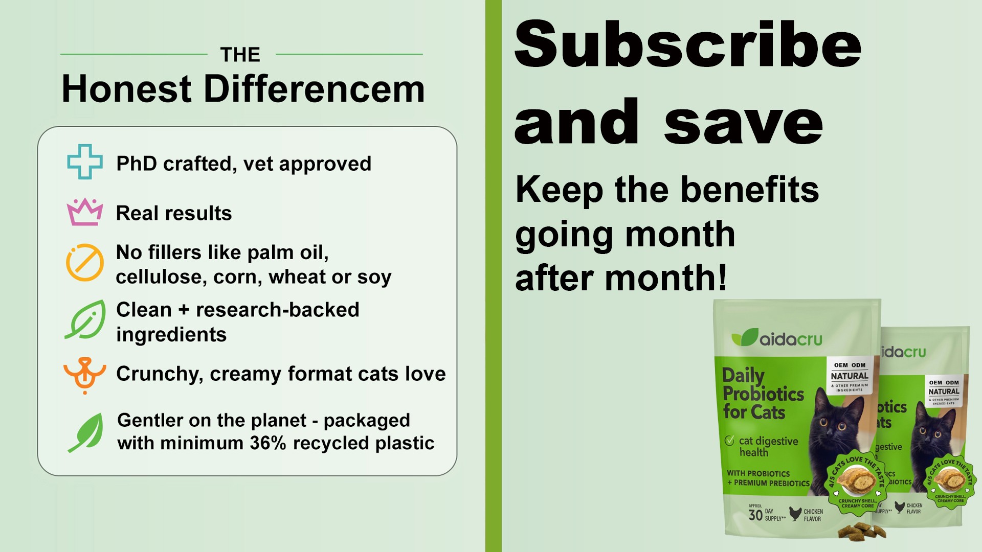 Aidacru’s Omega Cat Mousse is a premium functional treat formulated to bridge the gap between gourmet snacking and clinical health support. By offering a "Cat-Approved" tuna flavor, we ensure high consumer compliance and repeat purchases for your brand.
