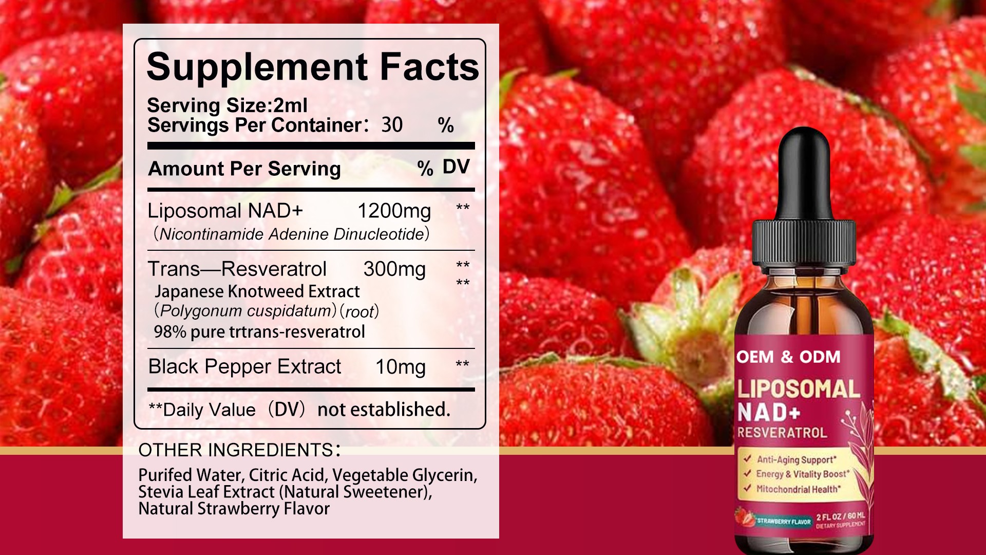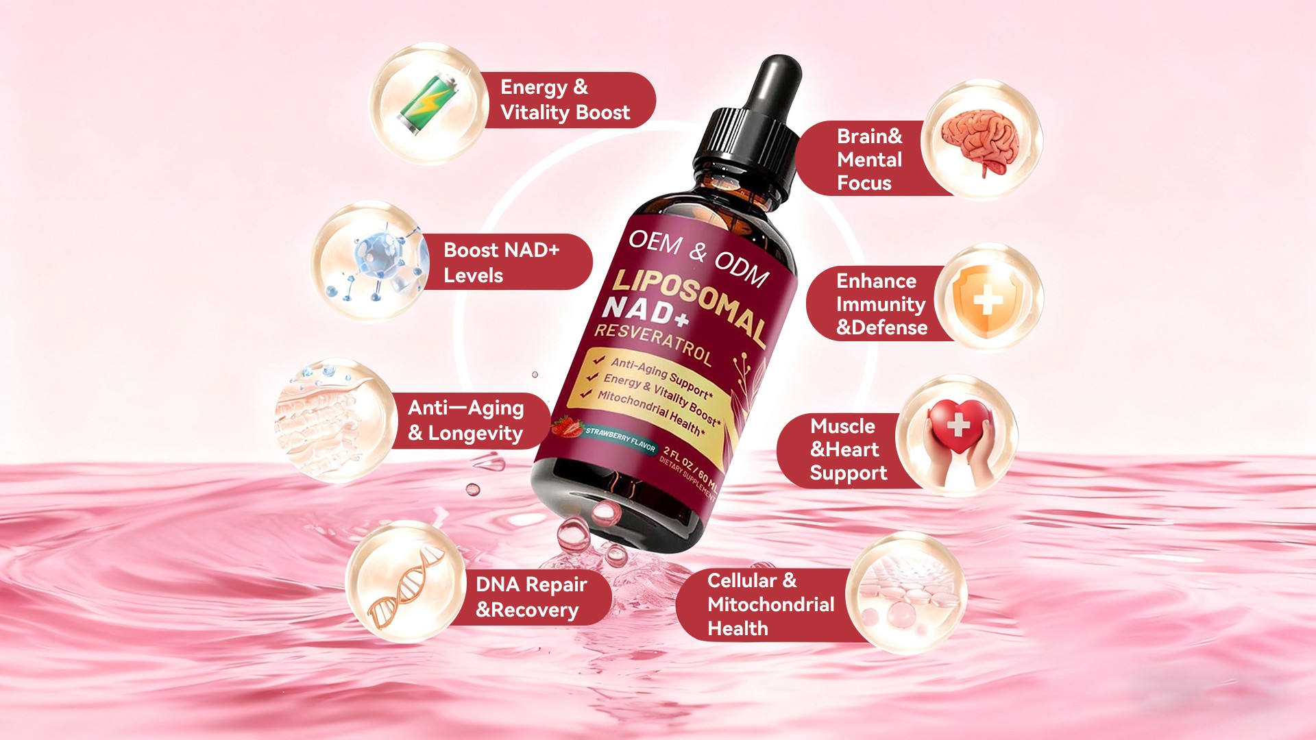 OEM ODM Private Label Nicotinamide Riboside Anti-aging Liposomal Nad+ Resveratrol-Enhanced Cellular Nad+ Liquid Drops