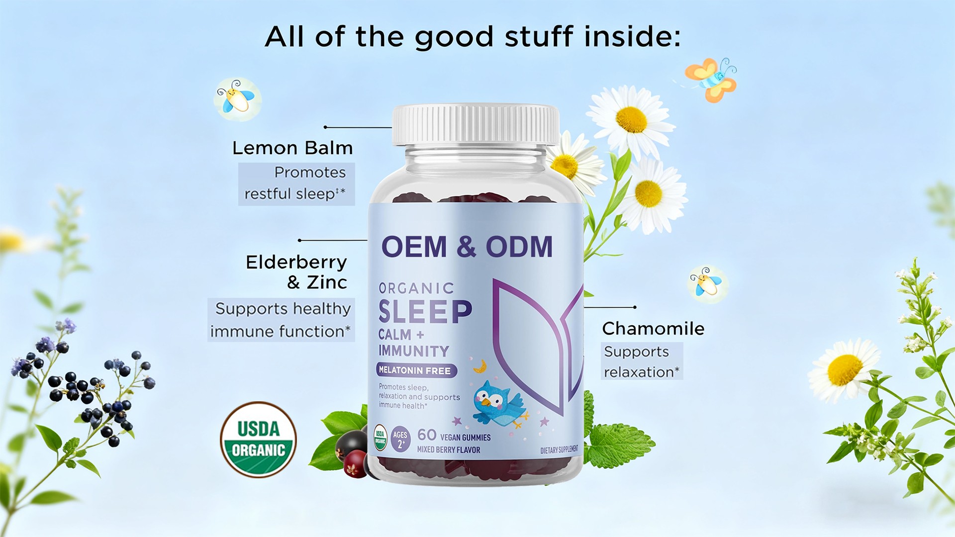 OEM ODM Sleep Gummies Supports Relaxation Immune Health Multi-benefit Organic Sleep Gummies with Lemon Balm Zinc Chamomile