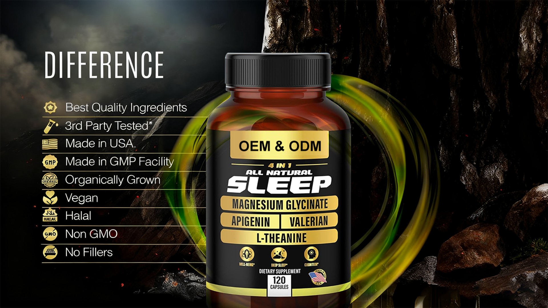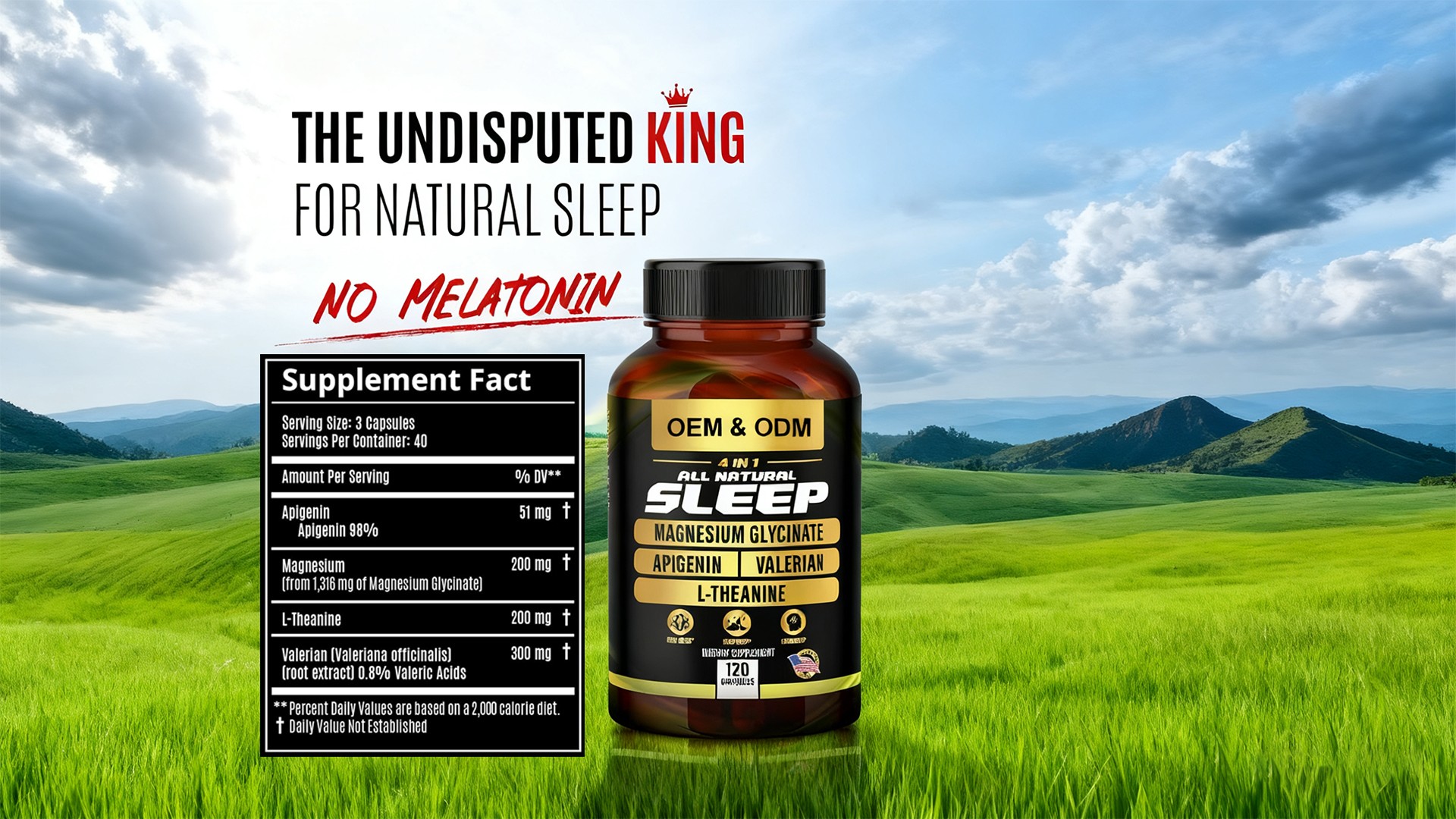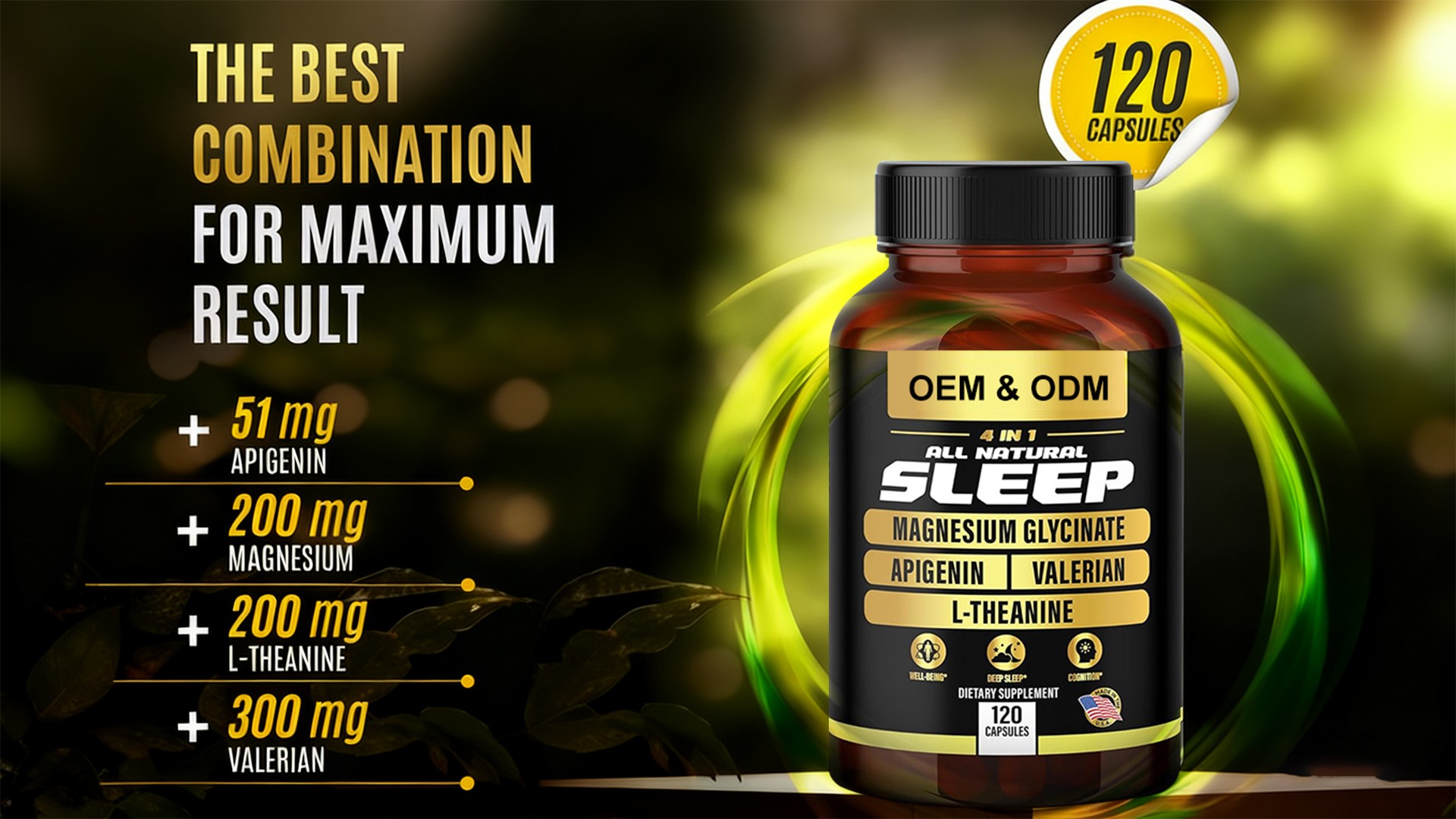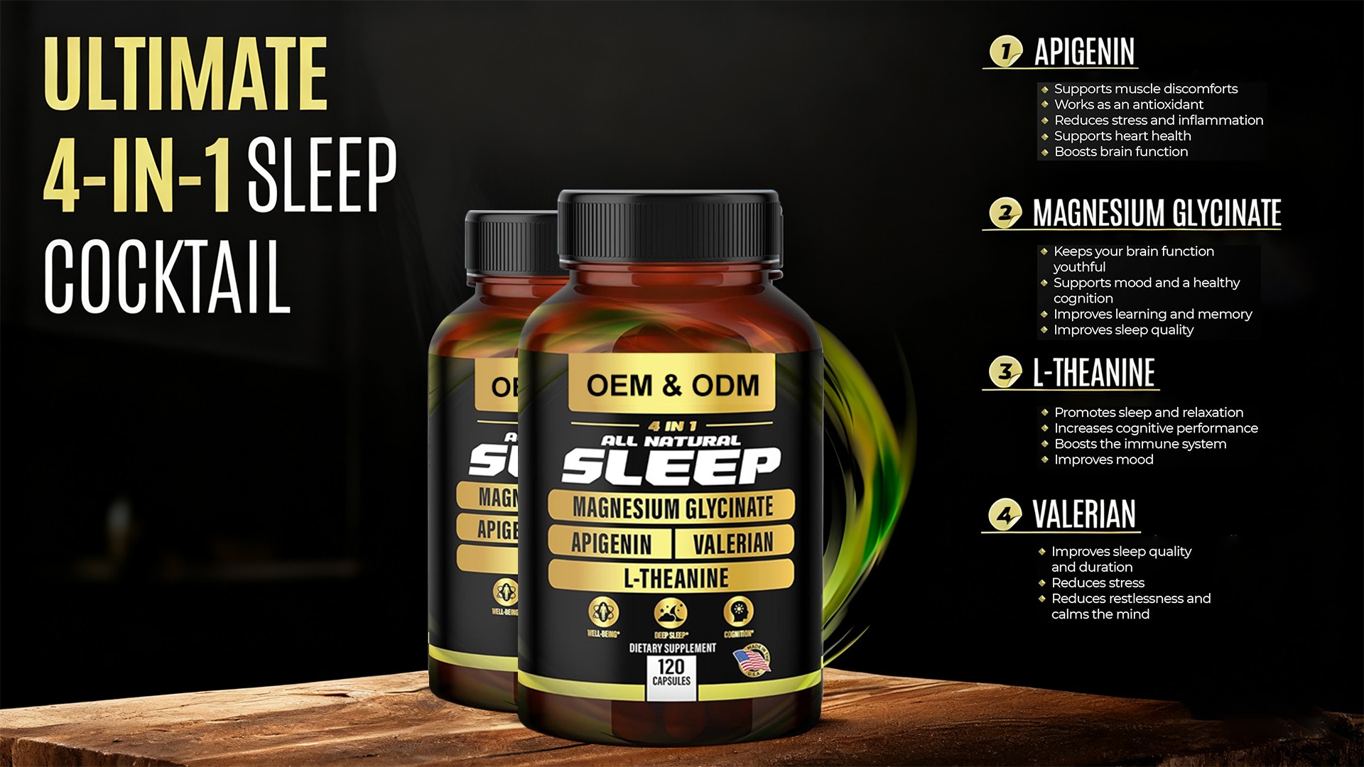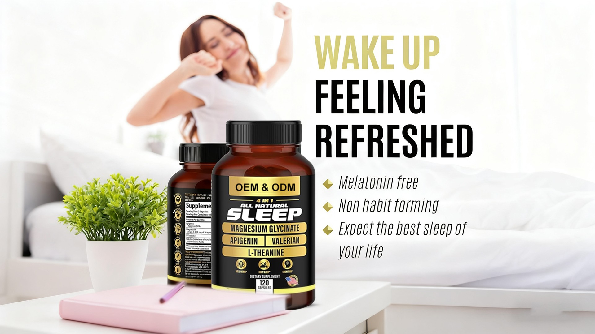 OEM ODM Sleep Health Capsules Magnesium Glycinate Sleep Capsules with Apigenin Valerian L-Theanine with Melatonin Free