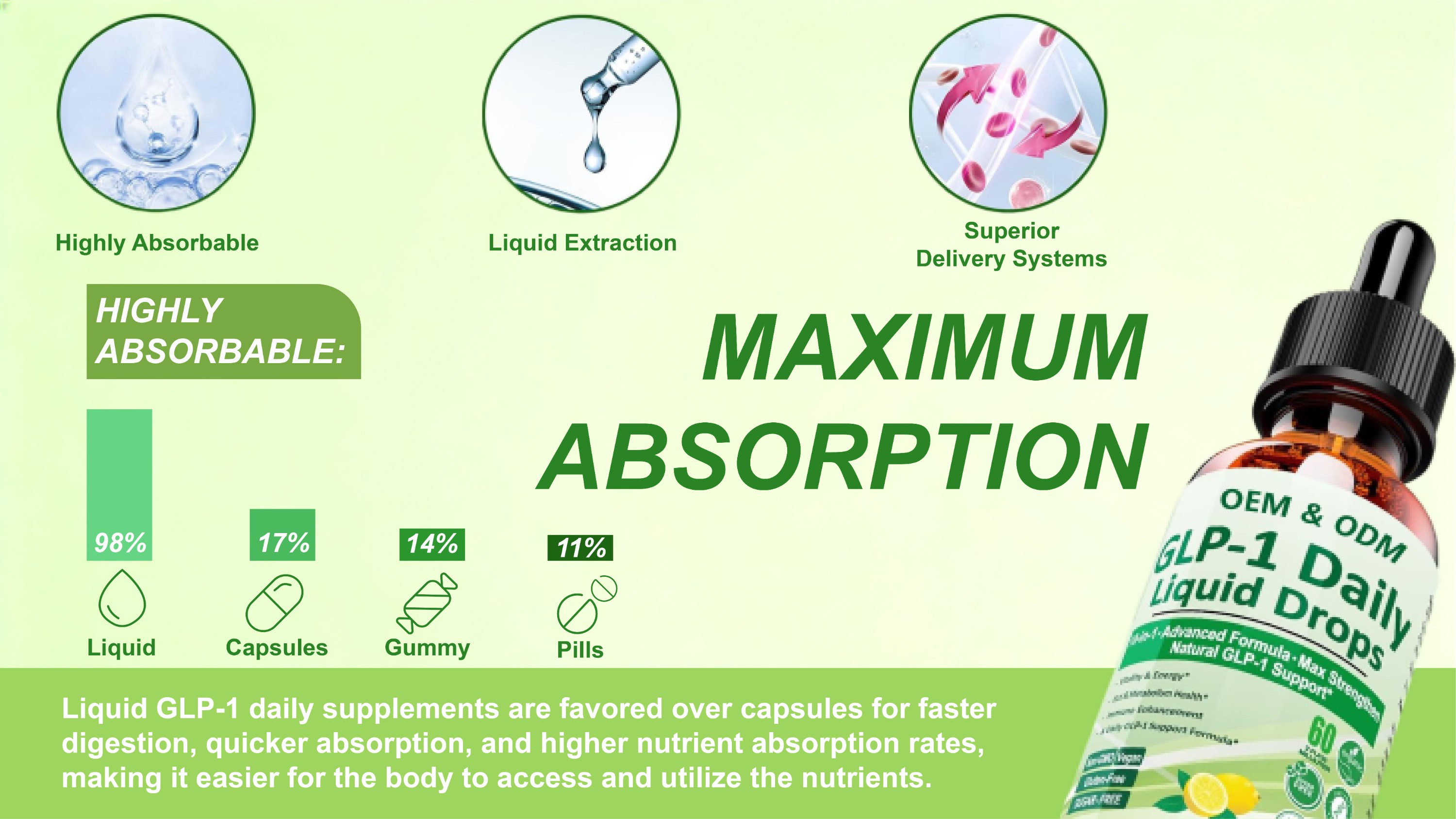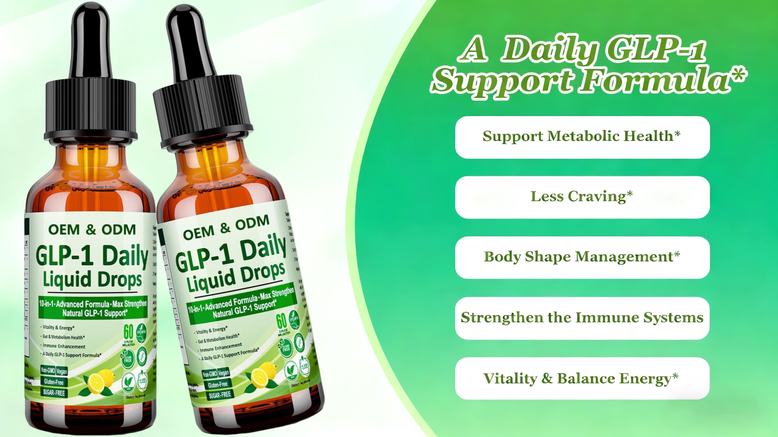 GLP-1 Liquid Drops OEM Manufacturer | Metabolism, Gut & Energy Support Formula