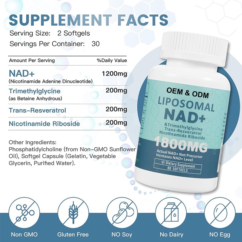OEM Private Label Hydration Trans-Resveratrol Nicotinamide Riboside NAD+ Capsules Nutrients Health Supplement NAD+ Softgels