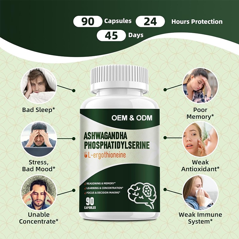 OEM Private Label L-Ergothioneine Dietary Supplement Ashwagandha EGT Capsules Natural Herbal Extract Ergothioneine Capsules