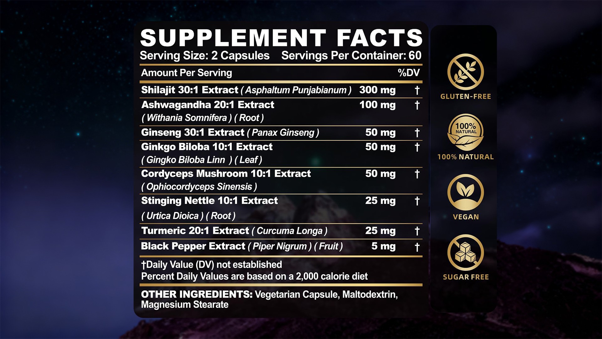 We provide custom Shilajit and adaptogen capsule manufacturing services for supplement brands focusing on energy, wellness, and cognitive support. Our formulations combine Himalayan Shilajit Extract, Ashwagandha, Rhodiola Rosea, Panax Ginseng, Ginkgo Biloba, and Cordyceps Mushroom to create functional herbal capsules tailored to modern wellness needs.