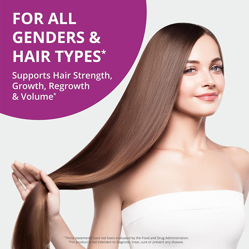 Highly efficient and scientifically formulated: The patented formula enhances bioavailability, delivering faster and more significant results and ensuring that nutrients reach the hair follicles efficiently.