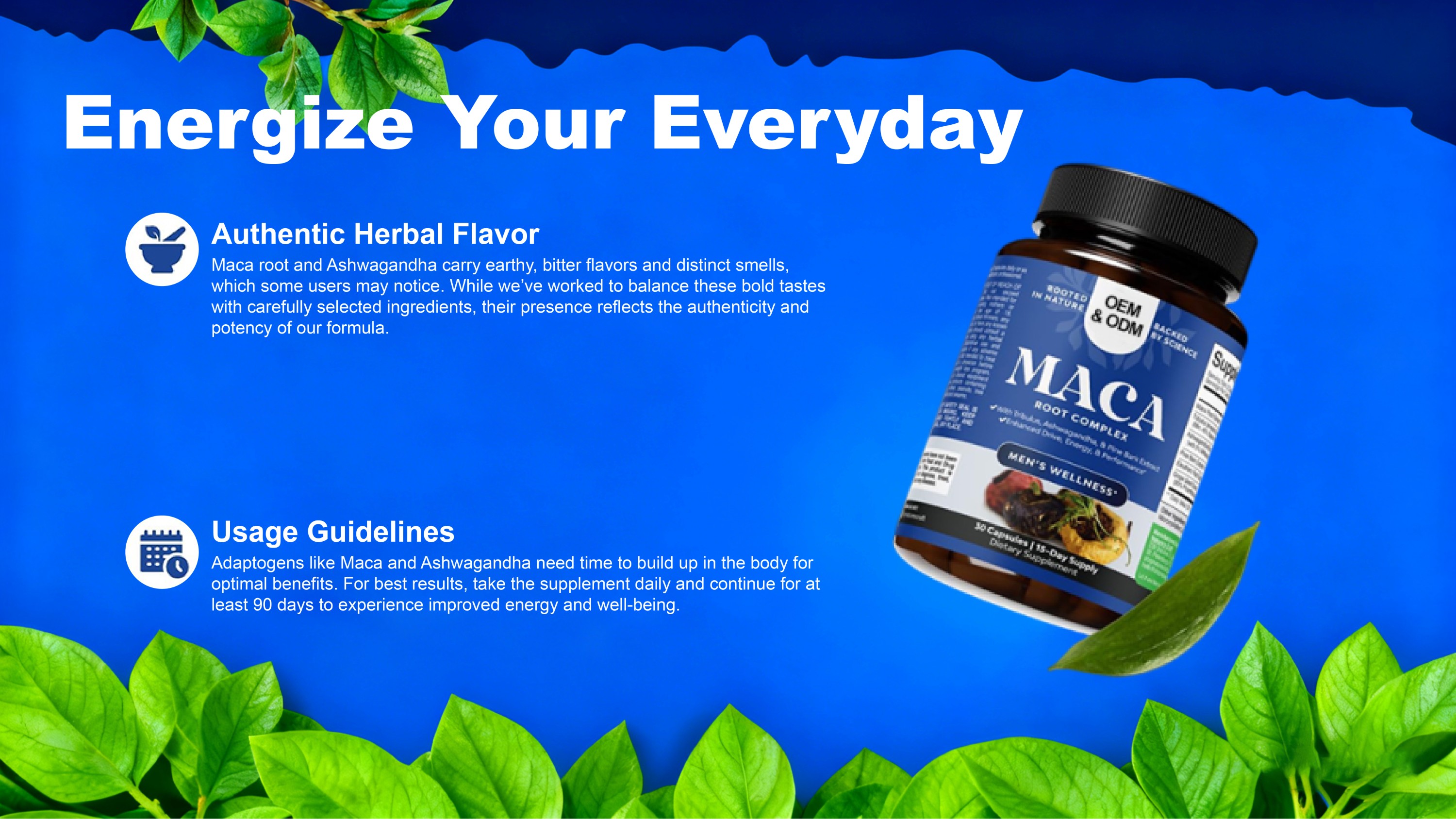 Maca Root & Adaptogen Capsules OEM Manufacturer | Men’s Wellness & Energy Formula