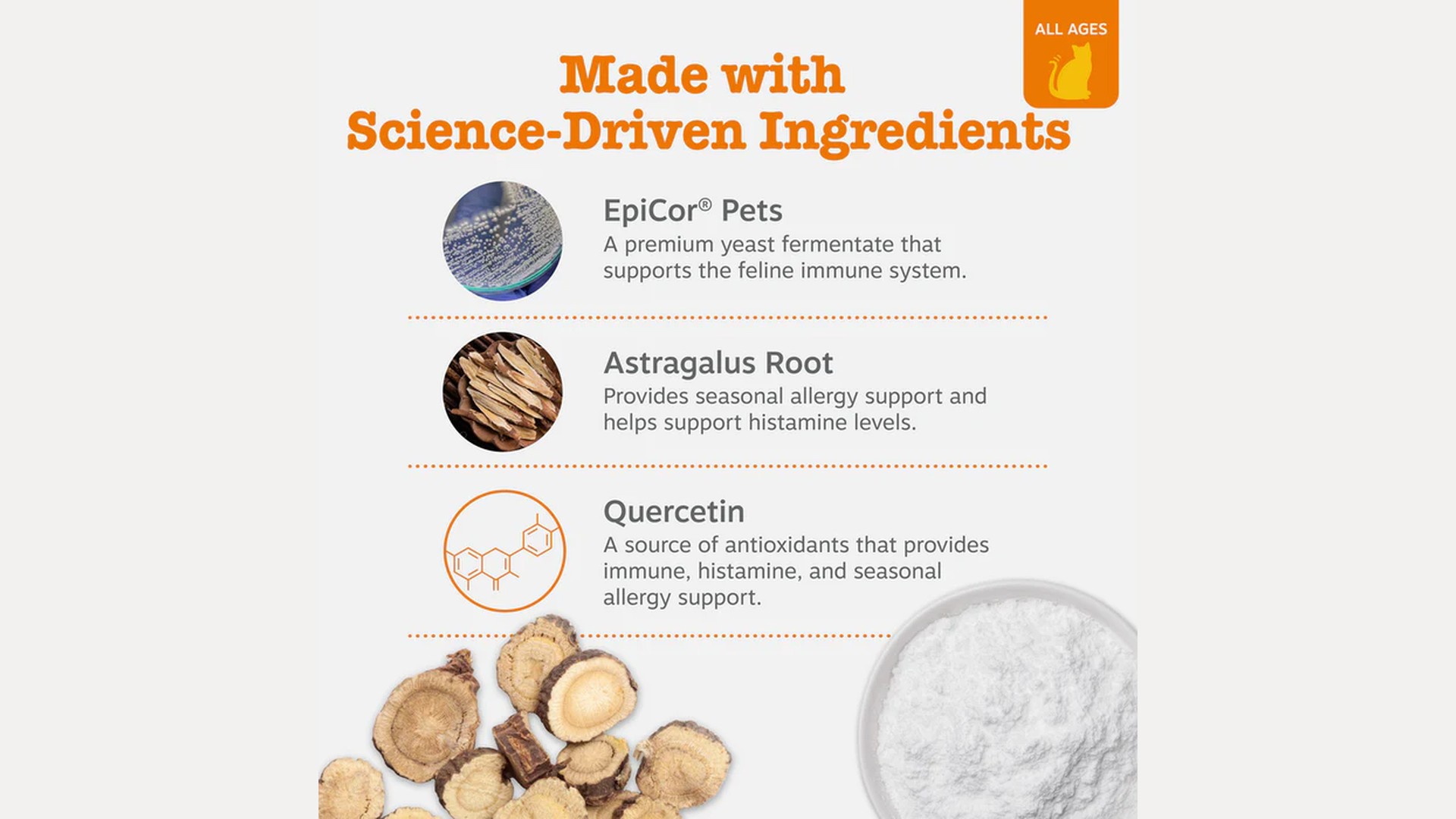 Immune & Multivitamin: Comprehensive daily nutrition to bolster the natural defenses of cats.