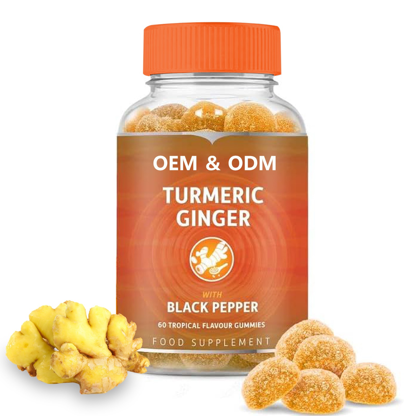 OEM ODM Organic Turmeric and Ginger Gummies Supplement Turmeric Curcumin Vegan Gummies With Ginger Black Pepper